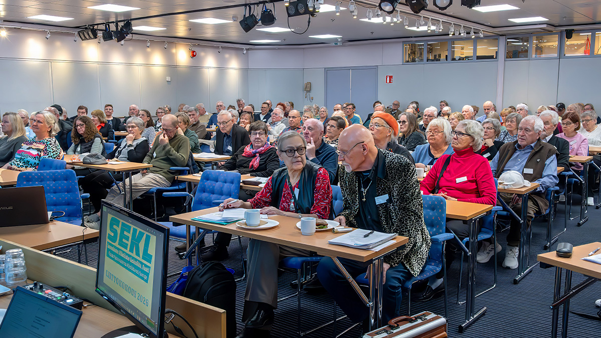 Liittokokous pidettiin sunnuntaina 12. huhtikuuta 2026 Viking Linen Gabriella-laivalla. Kokoukseen osallistui 140 SEKL:n jäsentä.